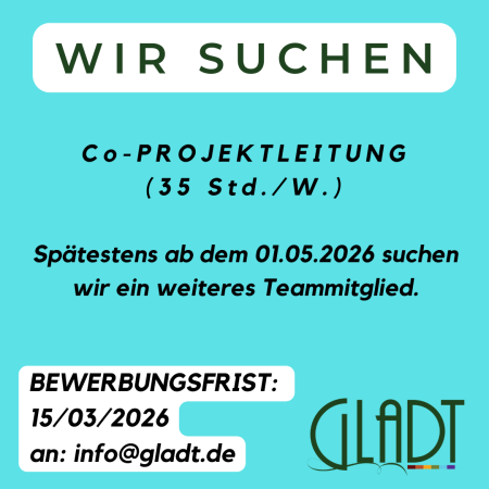 GLADT is a self-organization by and for Black, Indigenous and of Color lesbian, gay, bi+, trans, inter* and queer people in Berlin.